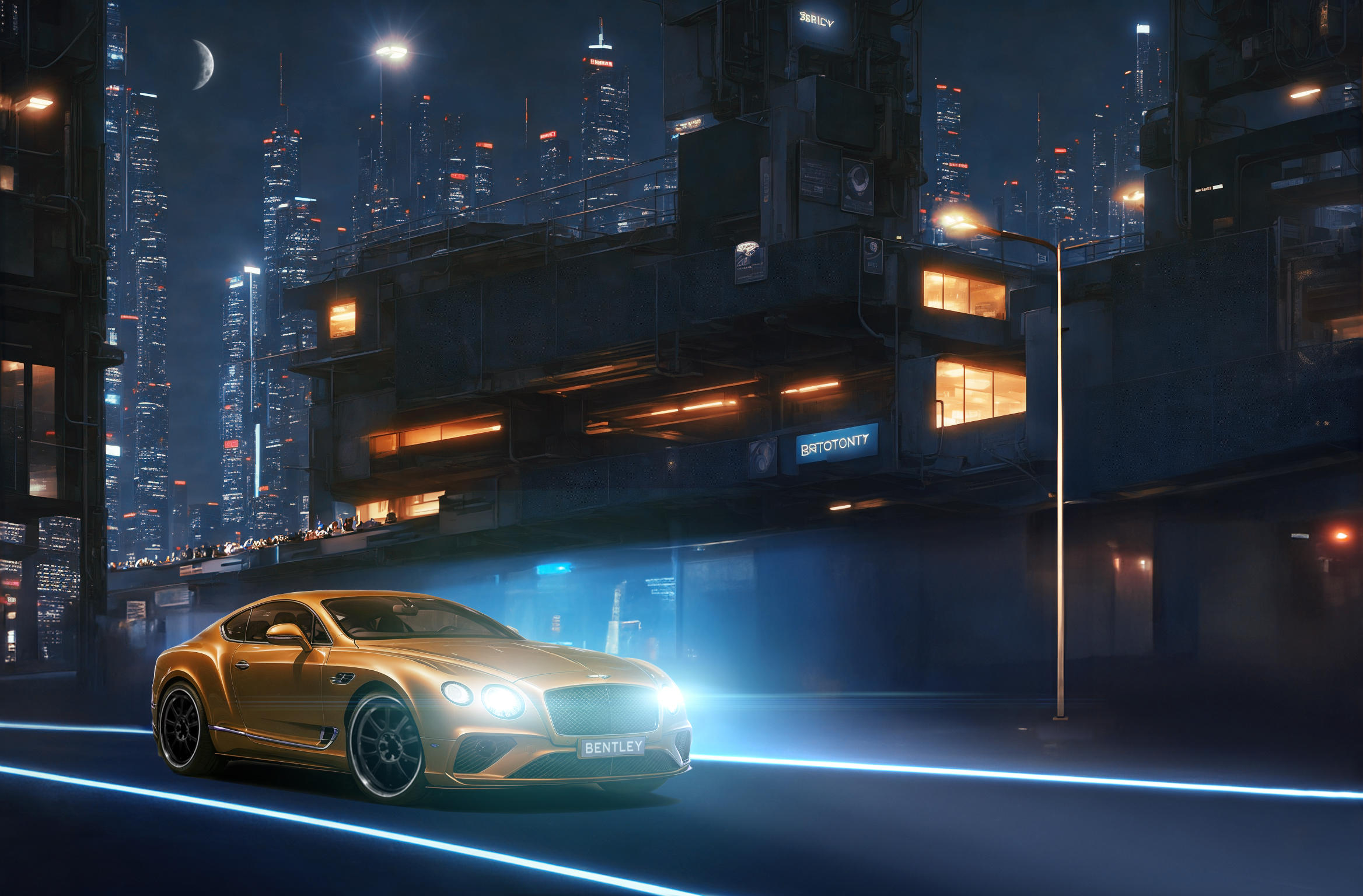 Conceptual poster for a Cyberpunk Bentley Continental GT Speed